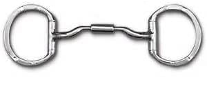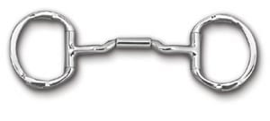 This bit has all the advantages of the 04 eggbutt with hooks, except for the advantages of the hooks (which stabilizes the bit in the horse’s mouth and allows you to use less contact). This bit would be good for showing if the rules don’t allow hooks. The dee-ring is more popular in certain disciplines, where it may fit in better. This bit is approved for USEF dressage.